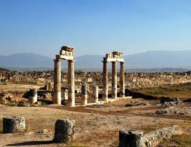 在这里,各种类型建筑的遗址从平地一直延伸到山坡上,直至山顶。这些建筑有异教徒、罗马人、犹太人或早期基督教的各种风格,并且融合成一个安纳托利亚式的整体,包括拜占庭教堂遗址、阿波罗神庙地基、古池、罗马剧场、使徒圣菲利浦避难处、希腊剧场等。