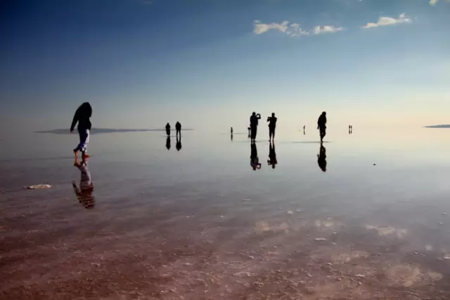 图兹湖是土耳其最大的天然盐湖,位于干旱的中央高原洼地。夏季枯水期间,大片盐滩露出湖面,可供采盐。湖水由少数溪流补给,无出水口。湖水并不多,可以一眼望到白茫茫的一片盐湖,湖面如镜子一般反射照映出透亮明净的天空。这样的景色不就是我们时常向往的“天空之镜”吗?那种惊艳的感觉,美得炫目,美得迷醉。